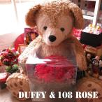 お誕生日 ディズニー ダッフィー ぬいぐるみ 100センチ フラワーギフト プリザーブドフラワー入り 赤バラ108 ケース付
