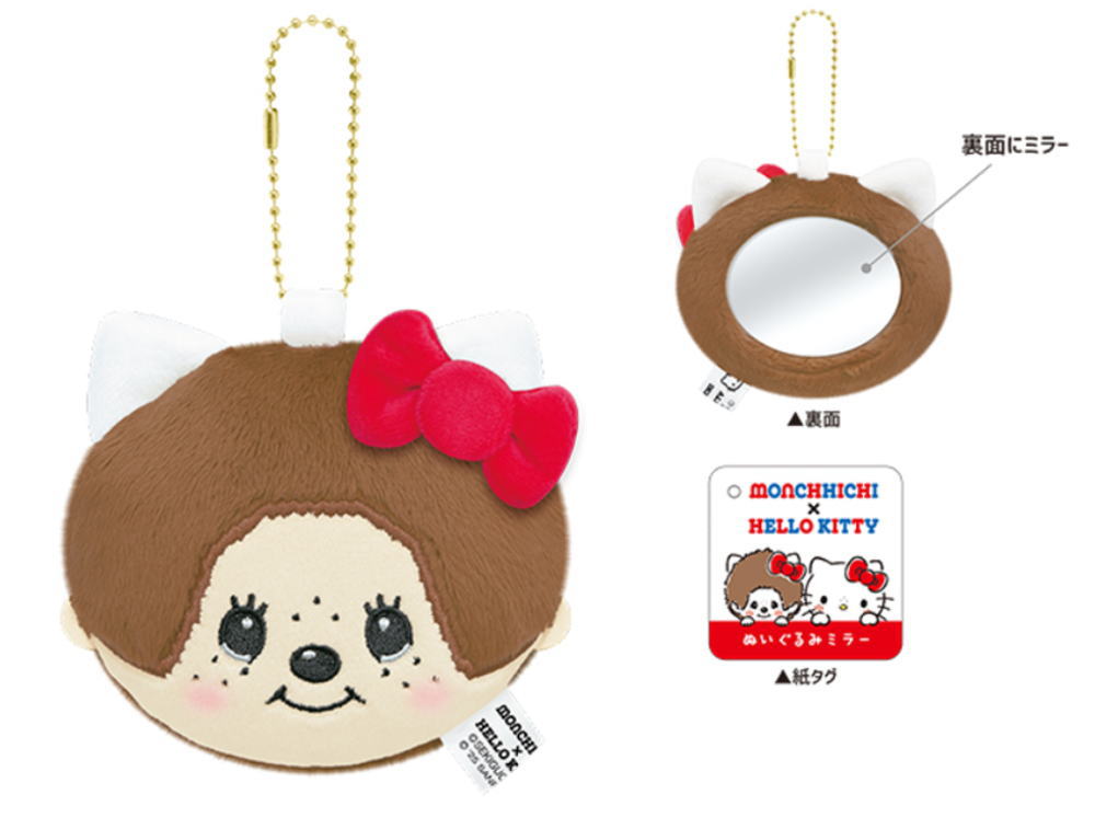 ハローキティ モンチッチ コラボ キーホルダー ミラー 鏡 手鏡 ぬいぐるみ カバン マスコットキーホルダー monchhichi × HELLO KITTY ぬいぐるみミラー 130923
