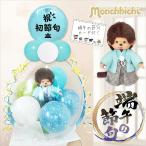 モンチッチ 初節句 端午の節句 バルーン ギフト お祝い 5 月 孫 甥 贈り物 ぬいぐるみバルーンラッピング9インチ初節句ライトブルー兜&モンチッチ紋付袴S男の子