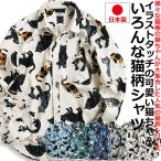 【期間限定40%OFFセール!!】 長袖シャツ メンズ 猫柄 シャツ 柄シャツ ねこ ネコ アニマル 動物柄 日本製 にゃんこ 爆買
