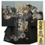 お宮参り 着物 男の子 絹100% 正絹初着 浜ちりめん生地 兜 黒濃淡灰色ぼかし染め分け 手描き 手染め 桐箱付き 日本製
