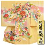 お宮参り 着物 女の子 絹100% 正絹 女児初着 黄色ピンク染め分け 金彩百花 手描き 手染め 純国産生糸使用 浜ちりめん生地 桐箱付き 日本製