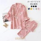 パジャマ ガーゼ ふわふわ ダブル 半袖 レディース 夏用 メンズルームウェア 春夏 コットン 綿100% 涼しい 半袖 長ズボン 大きいサイズ 3L ギフト 部