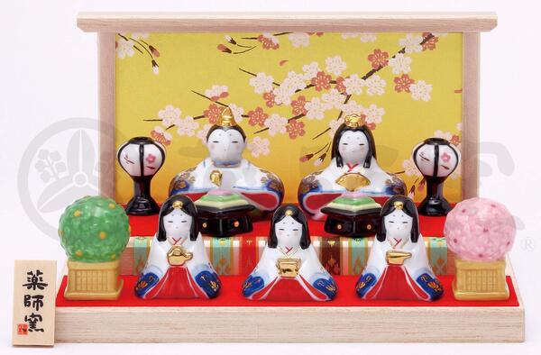 薬師窯 彩絵華小紋雛 (平飾り) 2637 雛人形 コンパクト モダン ひな人形 おしゃれ かわいい 陶器 雛祭り 玄関 マンション 縁起 出産祝 誕生日 プレゼント 伝統工芸・陶器の和遊感