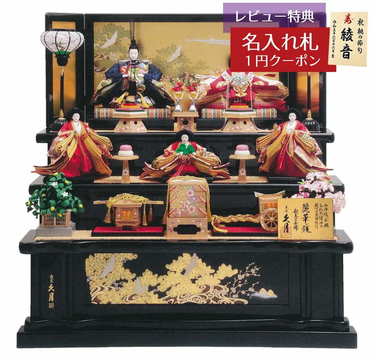 送料無料 久月作 雛人形 西陣織金襴 衣装着五人揃い 木製三段飾り 【初音雛】 〈お雛様 お雛さま おひな様 御雛飾り おひな飾り お内裏様 お姫様 雛祭り ひなまつり 初節句祝い 桃の節句 上巳の節句 3月3日 ひな人形 衣裳着人形 三人官女 通販〉