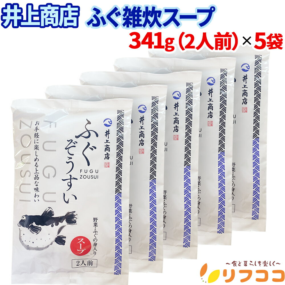 【回数制限無しのレビュー書いて10%OFFクーポン配布中♪】井上商店 ふぐ雑炊スープ 341g(2人前)×5袋セット ふぐの身入り ふぐぞうすい 雑炊用スープ