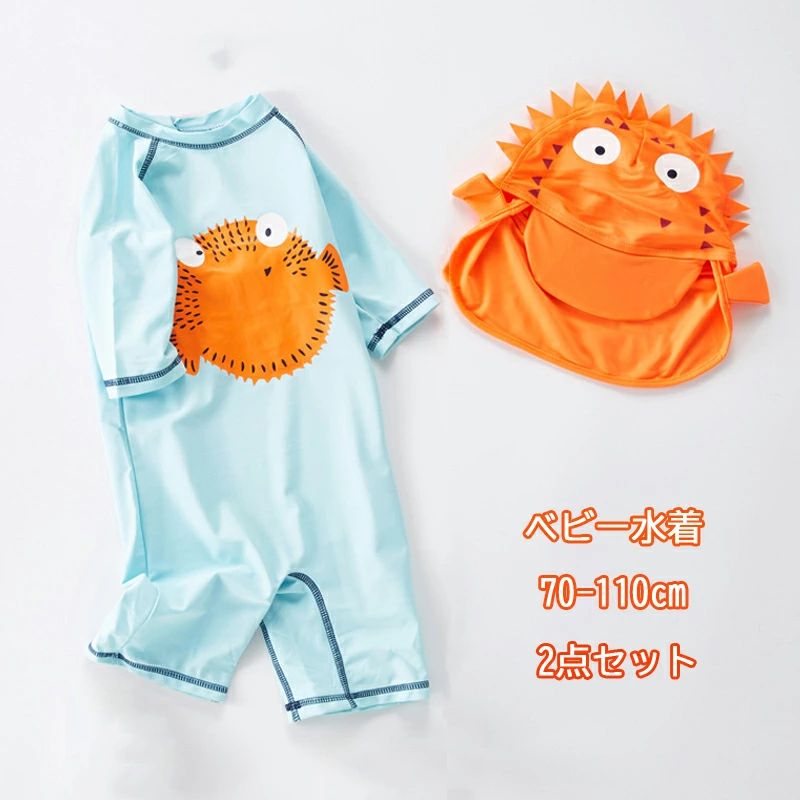 【レビュー特典 20%OFF】ベビー 水着 女の子 男の子 水着 ワンピース キャップ 2点セット ラッシュガード スクール水着 キッズ 女の子 水着 ベビー 女の子 水着 ワンピース 男の子 ミズギ プール 海水浴 スイミング 小学校 水着 河豚柄 夏