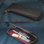 スリムな ファスナー ペンケース 【コンパクト / 小さい】【栃木レザー】 内縫い仕立て 筆箱 ふで箱 ふでばこ ぺんけーす ペン ケース ペンホルダー