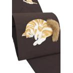 着物だいやす 170■名古屋帯■衿秀 刺繍 猫 茶トラ 尻尾がふわふわ ファー 赤墨色 特選【送料無料】【新品】