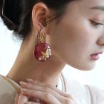 イヤリング 大ぶり 揺れる 日本製 蒔絵イヤリング 紅葉・赤 丸型 ネジバネ式 上品 和風 レトロ 和装 着物 浴衣 レディース 女性 メール便可能