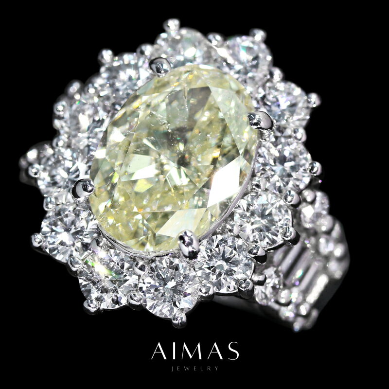 イエローダイヤモンド 7.072ct(SI-2 VERY LIGHT YELLOW) リング 13号 PT900 プラチナ 指輪 オーバル 楕円 ラージメレ ダイヤ取り巻き ヘイロー ハイジュエリー 目立つ 大ぶり 大粒 4月誕生石 <鑑定書> 金剛石 色石【中古】【ジュエリー】【送料無料】RLJE.MA