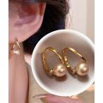 ピアス レディース パール 18金 18Kコーティング フープ リング 揺れる リング 上品 『両耳用・2個セット』
