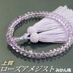 数珠 念珠 上質ローズアメジスト(みかん珠)共仕立 上質正絹頭付房(桐箱付)(略式数珠(女性用)/京念珠) 2月の誕生石