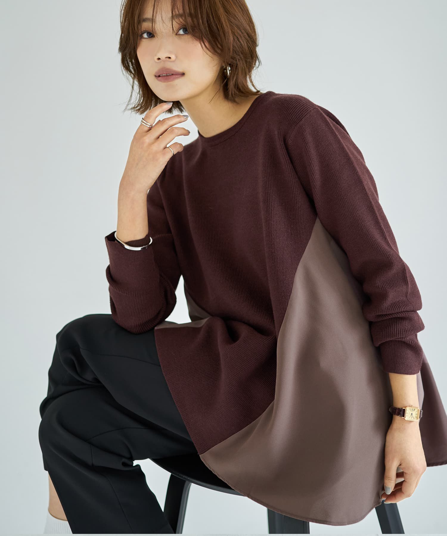 STYLE DELI(スタイルデリ)/ジョーゼットコンビフレアニット