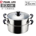 両手鍋 26cm 蒸し鍋 2段 蒸し器 ih ステンレス 味噌汁 パール金属 H-5875 IH対応 ガス火対応 鍋 ih ガス ガス火 オール熱源対応 新生活 なべ 4976790558754