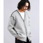 カーディガン ふわもちウール混 配色ラインカーディガン メンズ レディース