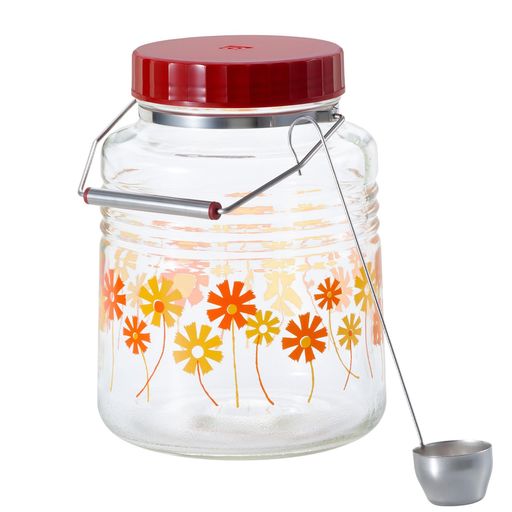 果実酒瓶 梅酒びん 4リットル 大容量 おしゃれ 取手付き 【 MCコンテナー 4L 】 持ち手付 ガラス アデリア レトロ 石塚硝子 手作り 果実酒 びん 貯蔵瓶 ステンレス蓋 丸型 日本製 ボトル インテリア 梅干し ピクルス らっきょう漬け カンロ杓子 レードル 付き