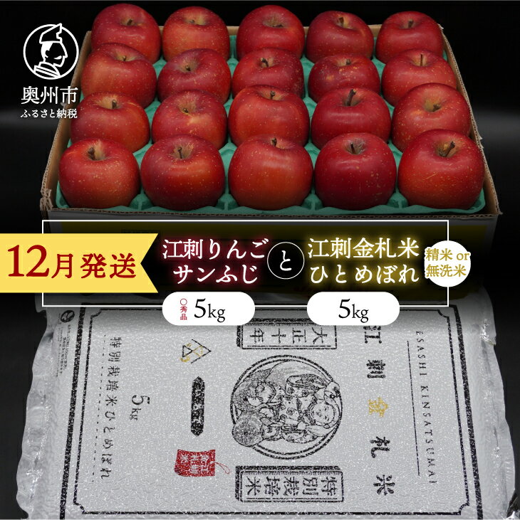 【ふるさと納税】 【精米/無洗米】 江刺りんご「サンふじ」5kgと 江刺金札米 ひとめぼれ5kgセット 【12月発送】 林檎 フルーツ 果物 米 セット 詰め合わせ [AQ074]