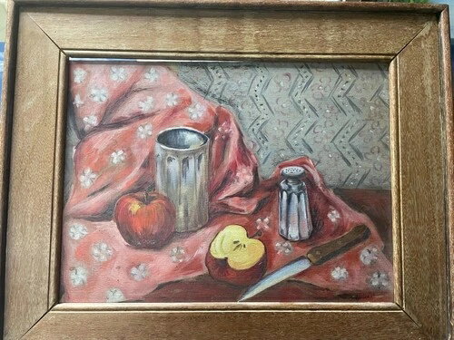 ウェズリー・リー作「りんごのある静物画」1939年 油彩・版画 オリジナル 希少