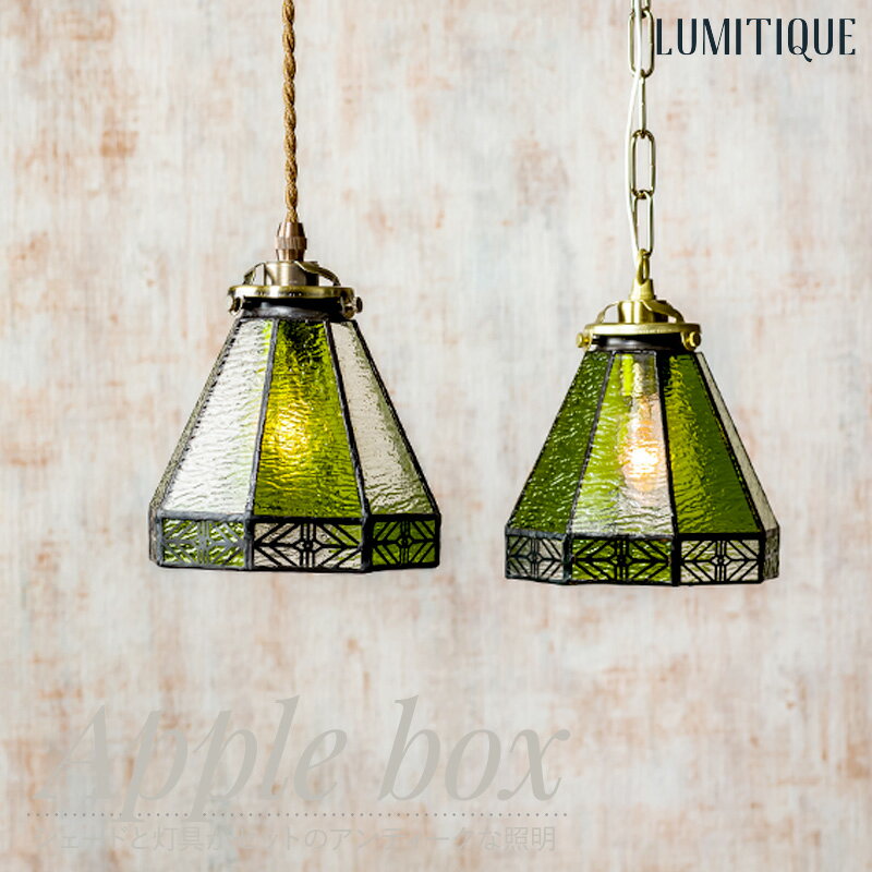 [11%OFF!12/1限定クーポン]ステンドグラス 照明 おしゃれ ペンダントライト アンティーク つりさげ 吊り下げ ペンダントライト ステンドグラス シェード ツイストコード チェーンコード 口金E17 林檎箱 可愛い 天井 後付け 工事不要 Lumitique ルミティーク C-F-1