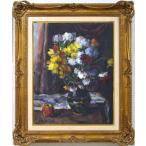 P・バック(P・BAK Janos)「りんごと花の静物」油絵・変形20号■現代ハンガリー画壇を代表する巨匠【小竹美術】真作保証
