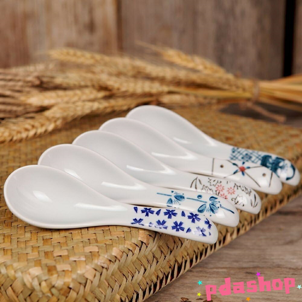 【全品2点で5%OFF】スプーン 陶磁器 おしゃれなスプーン レンゲ 5点セット 5つ花柄 キッチン用品 陶製 手造り 和風 レストラン和食器 飲食店 レストラン用 業務用