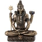 蓮華座を組んで瞑想ポーズの、シヴァ神 悪の破壊者 ヒンズー教 ブロンズ風仕上げ彫像(輸入品