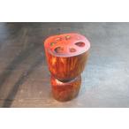 榧拭き漆れんこんペン立て 木製 文房具入れ 木製筆入れ くりもの 木のオブジェ 蓮根 彫刻 木彫り 工芸 木工 作家