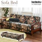 【開梱設置付】カリモク家具 YC6053 QK コロニアル ソファベッド 幅205cm ブナ フリージアグリーン色 布張り 日本製 正規品 karimoku カントリー調 花柄 3人掛け