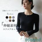 インナーウェア 長袖 Tシャツ レディース インナーシャツ クルーネック 伸縮 長袖Tシャツ インナー トップス シンプル リブニット ストレッチ