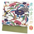 栗山吉三郎 名古屋帯 栗山紅型 和染紅型 紅型染 薄抹茶色 緑 山葵色 燕 ツバメ 牡丹 雲 九寸 正絹 浜ちりめん 特選 九寸 新品 No.6-1646