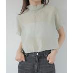 ブラウス シャツ シアーハイネックブラウス/sheer highneck blouse 半袖 スタンドネック シースルー シマー きれいめ シンプル
