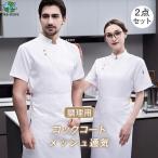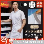 コックコート メンズ レディース 男女兼用 コック服 調理服 半袖 2点セット エプロン アイス 接触冷感 飲食店 おしゃれ パン屋 ケーキ屋 通気性