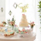 Bejotaa Sweet 16 ケーキトッパー - グリッタースウィート 16歳の誕生日ケーキトッパー 16歳の誕生日ケーキトッパー (ゴールド)