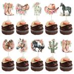 Gyufise 36個 馬 カップケーキトッパー ウエスタンカウガール 誕生日パーティーデコレーション カウガール 誕生日 カップケーキトッパー ウエ