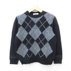 アイスバーグ ICEBERG ニット セーター 長袖 丸首 アーガイル柄 編み込み ウール 紺 ネイビー M メンズ