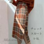 スカート レディース 秋冬 タイトスカート チェック ミモレ丈 膝下 タイト チェック柄スカート 体型カバー ハイウエスト かわいい おしゃれ オレンジ色