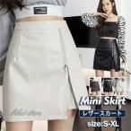 ミニスカート レザースカート タイト ミニ丈 スリット スカート 革スカート ハイウエスト ショート 合皮 フェイクレザー 革スカート 秋冬
