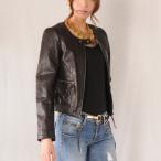 ラムレザー ノーカラーブルゾン ベジタブル加工 ダークブラウン9号