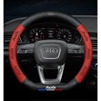 アウディ AUDI レッド ステアリングホイールカバー ハンドルカバー カーボン柄 滑り止め 専車ロゴ 直径38CM D型