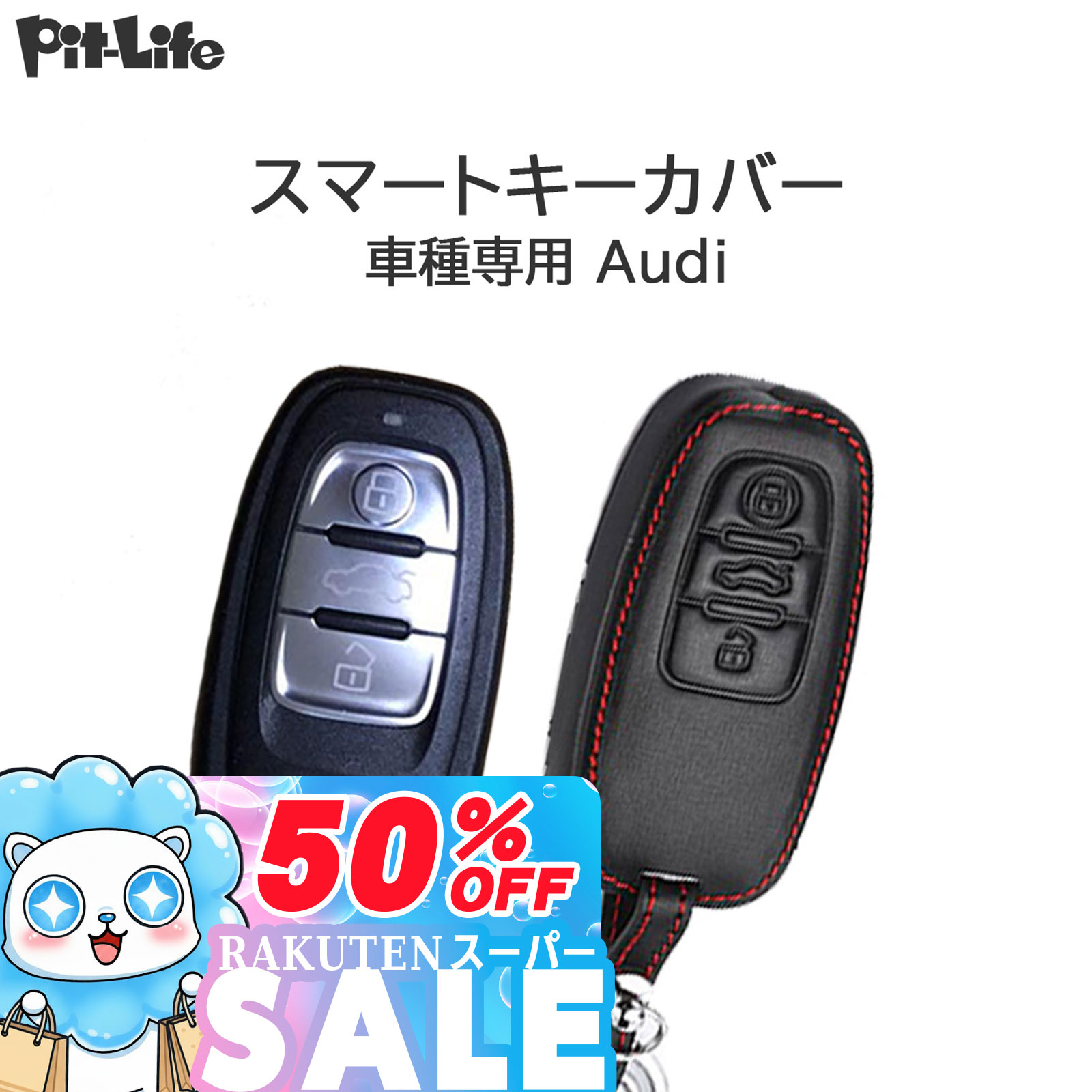 \P10倍+10%OFFクーポン/【残りわずか!在庫限り】audi アウディ キーケース 革 スマートキー キーカバー 黒本革 赤ステッチ | メンズ レディース TT A4 A6 Q3 Q5 Q7 R8 S3 S5 S6 革 皮 牛革 レザー 車種専用設計 純正 キー カバー スマートキーケース キーホルダー リモ