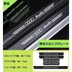 ◆アウディ AUDI◆車スカッフプレート夜光 傷防止 5点セット 車のドアステッカー プロテクションフィルム バンパー カーボン調 aadi qtm