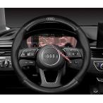 アウディ A1 A3 A4 A5 A6 A7 A8 Q2 Q3 Q5 Q7 ハンドルカバー 軽自動車用 バイク 本革 編み込み 高級 滑り止め 専車ロゴ付き