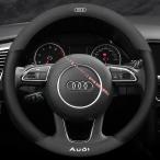 新作 アウディAUDI 専車ロゴ 滑り止め素材 ハンドルカバー アルカンターラ調+高品質レザー 滑り止め 汎用 ステアリングカバー O型/D型