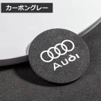 ◆アウディ AUDI◆カーボングレー◆車用 コースター ドリンクマット2枚 速乾吸水 くっつかない 柔らか 丸型 アルカンターラ調 ロゴ入り aabx qtm