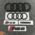 【並行輸入品】 アウディ RS6 2016-2020 2ピース 4リングロゴ ABS ブラック カーフードフロントグリルエンブレム リアトランクバッジステッカー 2P RS6 1P ア