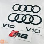 【並行輸入品】 アウディ R8 4リングロゴ ABS ブラック カーフードフロントグリルエンブレム リアトランクバッジステッカー R8ステッカー V10エンブレム カー