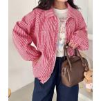 ブルゾン アウター ギンガムチェックフリルブルゾン レディース