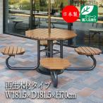 テーブルベンチ 椅子付テーブル アウトドアベンチ ガーデン用 丸型 テーブル幅φ87.5cm リサイクル 再生木材 ML-0090