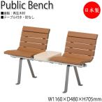 屋外用ベンチ 公共ベンチ ガーデンチェア 長イス アウトドアベンチ 2人掛 幅116cm テーブル付 肘なし ひのき 天然木 ML-0075